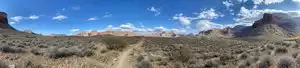 Sandy, rocky path into the Grand Canyon. Park where ever you find a spot and walk to the trail head by the rim path. There are restrooms and water refill area before you take the path down. As others have stated the path down is enjoyable but coming up will take double the amount of time that you thought it would. We did go to the 1.5 mile marker where there is a rest area and well marked point on the trail. Few shady spots along the trail. We didn't use hiking sticks since the ground was mixed of rocks and dirt.