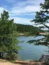 Nice picturesque lake, with lots of trees along the shoreline. Lots os people enjoying fishing and boating here; and the State park trails are great. Unfortunately, not enough trails IMHO