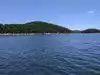 Beautiful lake and very warm water. Wear water shoes, even the beach is very rocky. Was a deep lake too - so we could anchor the boat on shore and still jump off the back of the boat and be plenty deep. We put the boat in at the dock opposite of the main marina - was very easy to get in and out.