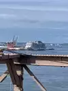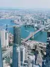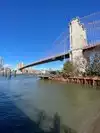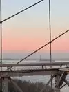 We didn't cross the whole bridge, we went only halfway and passed underneath it by the ferry, it's very beautiful.