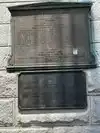 The wooden walkway the whole iron structure with arches in the center with signs describing its history