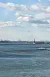 The Brooklyn Bridge is one of the landmarks of New York. It connects Manhattan with Brooklyn across the East River. Crossing the bridge on foot costs nothing, and on the 1.8 km route you can marvel at the Manhattan skyline or the Brooklyn boardwalk, depending on your viewing direction. If you look south, you can even see the Statue of Liberty in the distance.