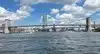 From the bridge you can also enjoy a beautiful view and on the right you can also see the Statue of Liberty in the distance
