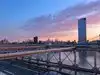 The bridge itself is very beautifully constructed and it is a bit cool that pedestrians are completely separated from traffic underneath. The view from the bridge is very nice, not least to see the city from a different perspective where the skyscrapers tower. The walk can take just how short or how long depending on how many times you stop on the way. Since the temperature was up at 32 degrees I chose to keep a little higher tempo over.