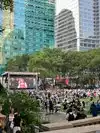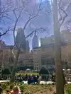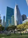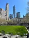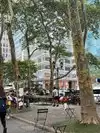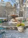 Beating heart in a not too large park which hosts the ice rink in winter. It is located behind the library and contains hot food kiosks and some souvenirs. A passage to savor a typical corner of Ny. The metro stop is exactly at one of the entrances.