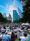 In the summer, this park is live, it has a daily lineup of free activities, concerts, especially Movie nights. The outdoor movie series at Bryant Park is a cherished summer-in-NYC tradition. Presented by Paramount +, the schedule always promises a crowd-pleasing mix of films from different eras and genres. Tip: the lawn opens at 5 p.m.) to claim your viewing spot.