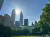 Beautiful park with a great view of the skyscrapers.
