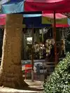 An oasis in the middle of town. We found an empty table and chairs and sat for a while to rest in the midst of lovely shade trees. Great architecture all around. Lots of things for sale in the market in the center.
