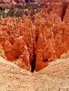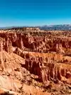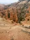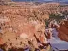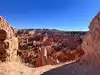 The beauty of Bryce is its accessibility; you can explore it with minimal effort. The service road encircles the park and features several turn-offs and parking lots proividing overlooks of various portions of the park. Some areas offer trails from the top, to the bottom, looping around and then back up, ranging from about 1 mile to much longer. But: you miss only a little by staying at the top.