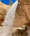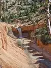 The next day, we did a few trails on the bottom of the canyon near the back entrance of the park (Not too far from Tropic, UT). There's a small parking lot that leads to the trails that run along a stream with wooden bridges crossing over the streams. The trails a quite steep as you head uphill. So we definitely joined the "Out of breath" hiker's club. There was a beautiful water fall that was not too strong. There is enough room to walk under it and grab a drink of that ice cold canyon stream water. I even filled my water bottle. The water tasted and would be a welcome relief in warmer weather, It was in the 50 degree range that day.