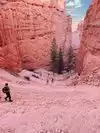 Hiked through Queen Gardens and Victoria Garden to Peekaboo Loop and then back as Navajo Loop was closed as was Bryce Point to Inspiration Point trail. Beautiful hike through the hoodoos. Peekaboo was muddy and icy in some spots.