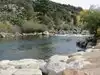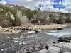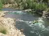 This large park has a number of components to it, including an inland playground. The portion I am reviewing consists of a bridge across the river, hiking on the far side, a place to put in small watercraft, and in general a spot to indulge in some water sports. All are quite good, and complemented by a large parking lot. As my photos show, today I caught a commercial operation releasing inflated rafts holding about six people each, one raft at a time, to "shoot the rapids" (not very serious rapids, which I can say since I was not in one of those rafts), and the screaming gave evidence that a good time was being had by all.