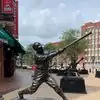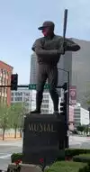My wife and I haggled tickets to a Cardinals/Braves playoff game at Busch Stadium. As native Chicagoans, we must admit that that atmosphere for a major league baseball game in St. Louis is more electric than at Wrigley Field in Chicago, like an SEC football game in Tuscaloosa or Athens or Baton Rouge or Knoxville. In 1967 and 1968, I attended baseball and football games at old Busch Memorial Stadium, a multi-purpose facility that hosted the Cardinals from 1966 to 2005. The latest Busch Stadium opened on April 4, 2006 with a Ballpark Village adjacent to the 45,500-seat, $365 million stadium. Located at 700 Clark Avenue in downtown St. Louis, it offers a panoramic view of the city's skyline and the Gateway Arch. The Gate 3 entrance on the west side is most iconic with a large bridge resembling the historic Eads Bridge circling over the entrance and overlooking the bronze statue of Cardinal legend Stan "The Man" Musial. Other St. Louis baseball statues previously surrounded Busch Memorial Stadium are now displayed at the corner of Clark and 8th Street, outside the Cardinals' team store--Hall of Famers Rogers Hornsby, Dizzy Dean, Enos Slaughter, Red Schoendienst, Lou Brock, Bob Gibson, Ozzie Smith, George Sisler, Cool Papa Bell and Jack Buck. St. Louis, which no longer hosts a professional football team or a professional basketball team, is truly a baseball kind of town, perhaps the most passionate of all.