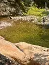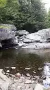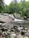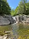 My nephew from Vermont took us to this great swimming hole. It was very hot this year in Vermont and this was a welcome break. The water is very cold and the area in and around the water is very rocky you will be lost without some type of water shoes. There was a safe place to jump off a rock cliff into the water if you are able to scramble up the side. There is a small waterfall you can stand under for fun. Maybe hard to find ask a local.