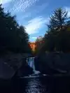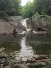 Easy access from Route 103 with large boulders to climb / sunbath on. A flowing 23 foot waterfall that is 15 feet 9 inches high. the area is washed bedrock 90 feet wide ending in a short cascade and a large pool of water. Downstream is a second smaller cascade around a small rock island.