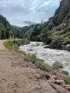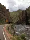 Beautiful canyon and mountain views along the river as you ascend. The river was very high due to late snows, making rafting possibilities here look very exciting. Rock formations above and rapids in the river make for great sightseeing and photo ops. Ft. Collins is only 30 minutes away from the start of your upward drive.