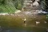 BE CAREFUL, the river is fast and cold and the rocks are slipperty. There are often fallen branches under the deeper parts that can trap and drown tubers and swimmers.