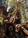 Whatever your level of fitness, you will be able to appreciate Big Trees. The North Grove, where you enter the park from Hwy 4 east of Arnold, is a 1.5 mile loop through towering trees; it is level and wheelchair accessible when there isn't snow on the ground (might be some tight turns). Although it is short, it is quiet and peaceful and offers plenty of opportunity to commune with some of the worlds oldest and tallest trees. There is also a written guide available for a tiny fee which describes some of the features and trees along the loop. Rangers walk the loop all day long and offer their own insights to inquisitive hikers- the day we were there a ranger excitedly pointed out to us "baby giant sequoia"- saplings about 8 inches tall- which were the first new growth sequoia he had seen in a couple of seasons; he explained how to tell the difference between sequoia saplings and cedar saplings (the flatness of the needles).