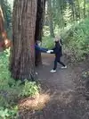 We also bought a guide for this park but realized it was not about individual specimens for the most part but kind of a generic flora and fauna thing. It is a nice park and the trees are tall and fabulous but we all agreed that Calaveras sequoias were much more interesting. The admission to Muir Woods is also $10 each, four times what admission is at Calaveras. Even on Saturday night just before "closing," Muir was busy and not peaceful. It would be advised to try a weeknight, early morning, or off season time for a more tranquil visit with the redwoods.