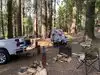 Our stay was Sunday through Saturday in August. This campground is down a ways from the park entrance so it’s very secluded and quiet. Filtered light throughout the day kept campground fairly cool even though temperatures in town were high 80s and 90s. Yellow jackets were definitely a problem and were persistent when you had food or were cooking. My friend made a trap using tuna water and that worked extremely well. I think she may have trapped the entire hive which was located at site 94. Bring a splatter screen or lid when cooking to avoid getting them in your food. We had a screen room without a floor (Walmart) that we popped over the picnic table. That helped too. You are camping under a canopy of trees so sap gets everywhere, including stuck to your shoes. There are two Showers/Bathrooms in this loop. The lower ones are newer and are single rooms for toilets and quarter operated showers. The plus side is privacy, the downside is you can’t adjust the temperature of showers. On/Off are the only options. I was also attacked by bees there. The upper bathrooms are dorm style with several toilets and showers at the end. One was broken, but the other worked well and I could control temperature. I actually preferred that shower. Tip: you can get quarters from the welcome center! Our two sites (93/94) were perfect for families traveling together because they are separated significantly from other sites and are flat and open in between. If you need a third site, I’d go with 92. There is a water spicket with threads right in front of #93 so you can easily hook up your hose and fill up your RV/Trailer. Short drive down to the Stanislaus River. Beautiful rapids but water was very cold. Water moves too fast to swim but there are are spots to wade.Tried to fish, no nibbles there. For swimming go down further to the South Grove parking lot and take the very short and easy walk to Beaver Creek. We took the guided ranger tour of North Grove because we wanted a little more information on the different flora and fauna in the park. Shout out to Vaughn!! Otherwise you can grab a brochure at the welcome center which will tell you about the different trees. Lake Alpine is 30 minutes from the park. Great excursion for boating, fishing, and swimming. It’s beautiful up there. We hiked the South Grove to see the largest tree in the park, the Agassiz Tree. The tree is immense and worth the hike. It’s just under 5 miles total (out/back hike) but is fairly easy. There is a bit of elevation at the beginning but flattens out. It’s very shady but don’t forget lots of water. We were lucky enough to be there for Astronomy night. Definitely check that out if you're around. Very knowledgeable and friendly people happy to share the sky with you. Tip: You can buy ice at the park entrance.