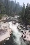 In addition, the road between North Grove and South Grove crosses the Big Trees branch of the Stanislaus River, and there is a pull-off there with several paths down to various little river beaches, mostly not crowded, all very pretty with riffles and small cascades.