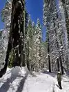 In winter, the trails are open to snowshoeing and cross-country skiing. Well-packed easy going in the groves, but great fun to get off the paths and into the woods if you're up for it. My wife and I went through he trees and over a little creek a few years ago when I was close to 60, so it's do-able!