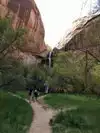 Wow! About three miles into the falls from the parking lot....interesting trail, lots of greenery, beautiful red canyon walls to look at as you walk...eye candy on the way to a beautiful water fall...can't say enough good about the hike! Just gorgeous! Can I give it six stars?