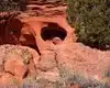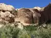 Pick up the trail guide at the trail head. The trail guide will identify where to look for Pictographs and ancient storage granaries along the trail. Binoculars or a good zoom lense camera will help locate the pictographs & granaries. The trail to the waterfall is also scenic.