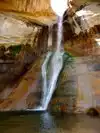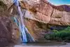 This 136ft. waterfall is never dry. The only way to see it is a moderate 3 mile hike. It is totally worth the hike! The trail through the canyon to get to the falls is beautiful and Calf Creek Falls is stunning!