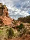 The hike was not strenuous, but I do think it deserves a description of moderate rather than easy, because there are a few spots where I think it could pose difficulty to someone who doesn't handle climbs or uneven surfaces very well. It provides beautiful scenery all along the way, and you can hear the water along the way, which just builds the anticipation of reaching that beautiful waterfall at the end of the trail. Once you arrive, it doesn't disappoint. It's like a little oasis in the middle of a desert. Sadly, we had a storm roll in right as we reached the waterfall, so with the wind/breeze, and a drop in temperature even greater than what the water and shade provide, we were just too chilly to spend much time in the water. But we found a spot to sit down, eat a snack, and enjoy the beauty and serenity for a while before we started back.
