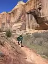 I strongly recommend this hike to see Calf Creek Falls. We saw several people in shorts & bathing suits walking under the falls. Make sure you take binoculars or zoom camera to get a good view of the Native American Pictograph. Part way into the hike if you look closely across the swamp you can see the pictograph on the rock wall.