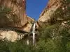 This is a three mile (one-way) hike down a progressively narrowing canyon. It has considerable sun exposure for most of the hike so consider some form of sun protection. Once at the falls, the temperature is at least ten degrees lower in that sheltered cove. It's a beautiful picnic spot and a fabulous swimming hole if you can tolerate the water temperature.