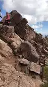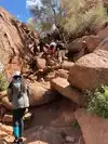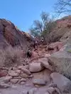 It's fun and mentally challenging. You need to look for a path of least resistance. It's a BOULDER Scramble not a hike. Good to have high cut hiking boots and your hands free so don't carry a water bottle in you hand. Actually saw someone with high heels. Prob didn't make it. Didn't see any kids make it.