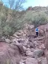 Great for exercising, but not so much for leisure hike. Views of city at summit are ok, nothing majestic. Gotta use your hands to climb in many places. Most people hiked half way only. We hiked up the echo trail and down the cholla trail. Struggled a little at some steep areas going down but if you take your time you'll figure it out. Blue dots mark the cholla trail.
