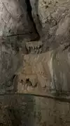 There is also a Mastodon bone imbedded in a wall 6 feet, according to radar/ sonar technology of some sort. They lived "10,000 years ago". In that same rock are marine fossils from when the cave formed.
