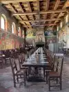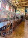 There is a guided tour of the castleâs chapel, enormous (height of ceilings and length of room) dining hall, torture chamber, and basement with barrels of wine.