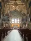 Breathtaking frescoes and paintings with a loving history. It was wonderful to celebrate Mass in this setting. We were given a warm welcome. Thank you!