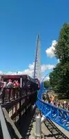 The Millenium Force line opened as we passed, so I went up. Then I saw that one train finished the ride but had to sit behind the water-tank test train while they were emptied in the queue space. 15 mins at least for them waiting to get off. Wow! Why???