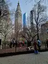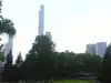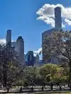 A beautiful walk with squirrels at your feet and the skyscrapers that surround you.