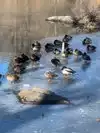 It was a grey, wintry day in the early afternoon that we went. The lake had frozen solid. Despite fallen snow on the paths, there were plenty of people, varied ages, out to enjoy this unique oasis. Little ones were having fun, in strollers, holding adult hands or even running ahead on their own. Hats, coats, gloves and scarves were all de rigueur for the weather, inclement as it was.