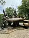 And you cross incredible sculptures like Alice in Wonderland. Dogs here enjoy immense space to run and wag their tails.