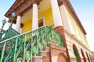 Built-in 1841 in the Greek Revival style, the red sandstone building with green ironwork trim, along with its sheds, are among the more than 100 sites in the city listed on the National Register of Historic Places.