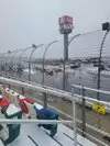 We had a rain delay during the event and the track concourse held everyone, but it was very crowded. The track had alot of dryers for the track. They worked really hard to get the track dried. I think it was about 2 hours for them to complete the drying and that was great.. I was happy that I stayed and watched the ending of the race.