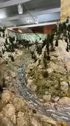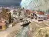 The layout uses N-gauge (9mm) track. The modeling is exquisite, the labor of a lifetime by one dedicated guy.