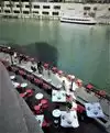 We ate lunch one day, then had wine several times on the river walk while we were in Chicago. There are half a dozen drinking and eating places spaced out and usually places to sit and watch the traffic go by on the river and the people walking by it.