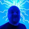 BLUE NEON TUMBLEWEED:..an electronic, blue, neon, glowing, glass machine that transformed me into a blue person. If I'd have shaved my head, I could have been mistaken for a member of the Blue Man Group,