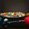 FLOAT BOAT: this is an installation that consists of a boat of glass balls of various colours, some small, some the size of your head and some as big as a beach ball. The boat sits on a black reflective plexiglass that renders, an already colourful scene, into something spectacularly dazzling.