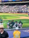 There are so many different eateries in this massive ballpark! There's really something for every palate. At this game, I did not eat but many people were getting Shake Shack. I had a few Budweisers during the game. The gentleman selling them was incredibly nice and remembered our seats. The seats were incredible on the field level. The third baseline is my favorite area to sit. It is my favorite view at a baseball game.