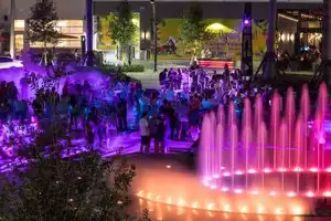 This family friendly area is a nice place to go to enjoy dinner (several restaurant options), a little shopping, and play (bowling and movie theater). The parking garage is convenient and free for the first two hours. At dusk the water fountain in the center lights up with different colors. Fun to watch! Because it is a touristy area prices are a little high.