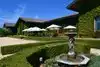 We were warmly welcomed and seated in a lovely outdoor tasting area. The surroundings are stunning â beautifully maintained grounds and a property that clearly reflects care and passion. The buildings are modern yet full of character, with thoughtful details like wall panels made from old oak casks adding a personal touch.